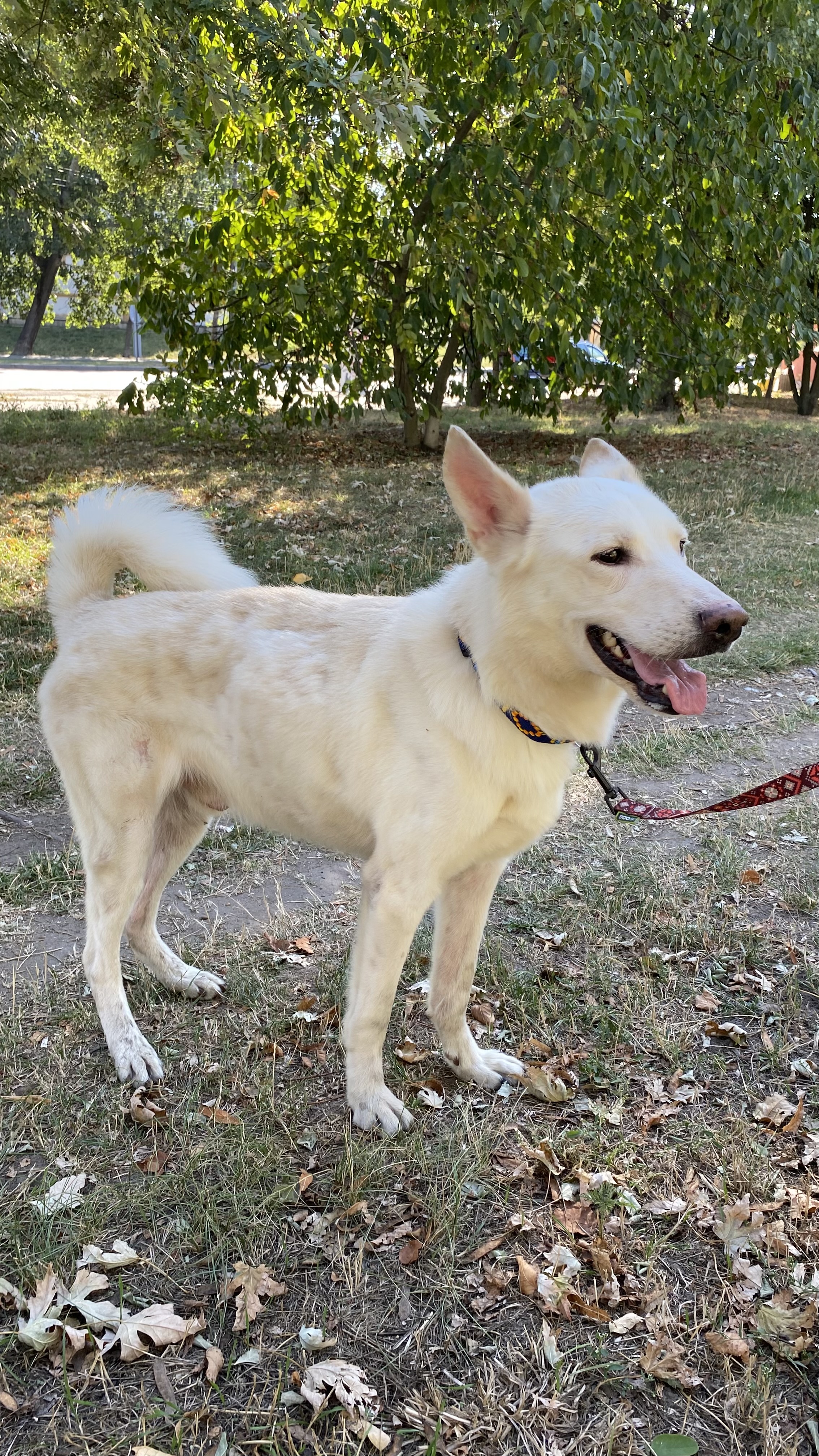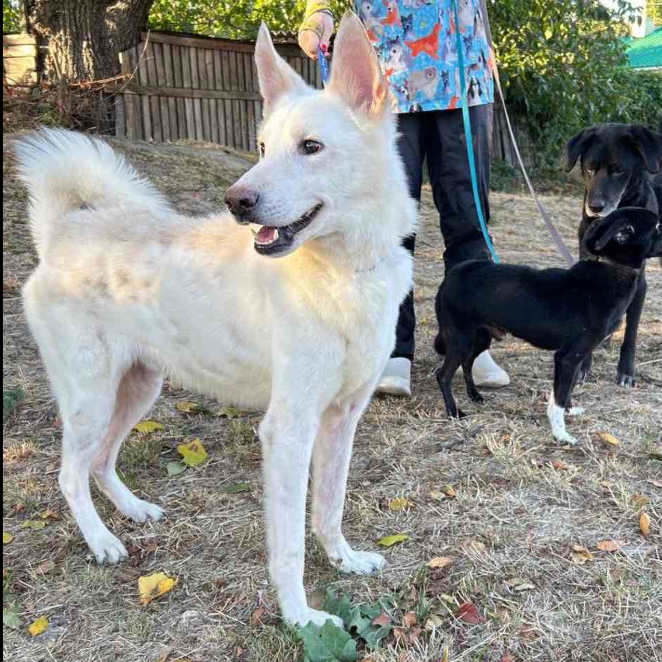 Лакі вже проходив обстеження у лікаря, і хвороб не виявили. Він швидко набирає вагу і знову почувається здоровим і енергійним. В нормальній вазі він буде важити 15 кг — він дуже красивий, білий і сильний хлопець! 😍