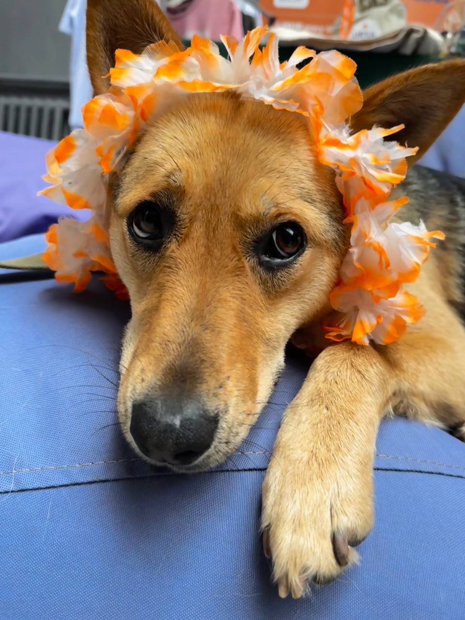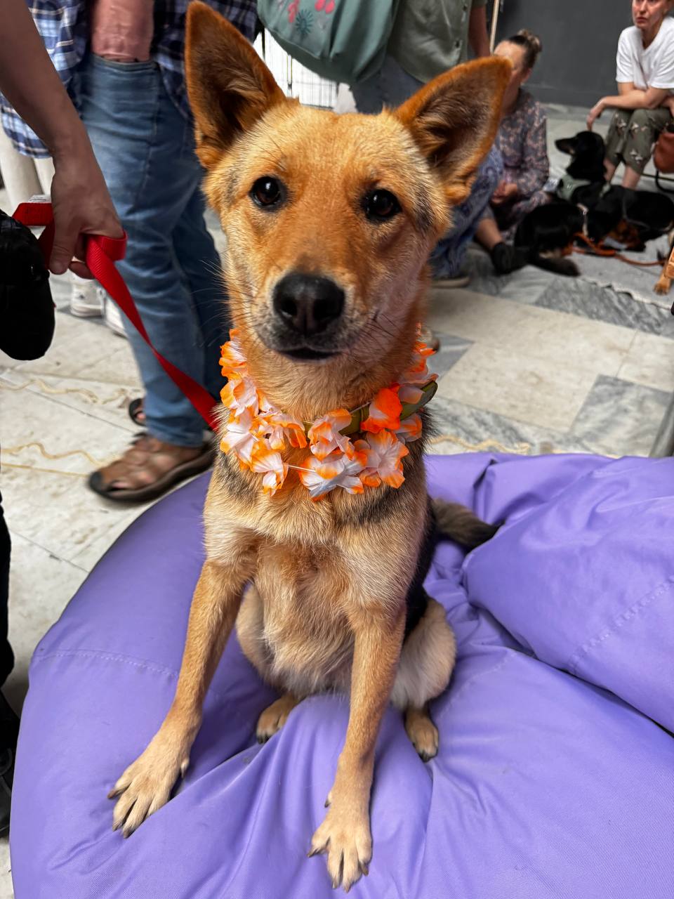 Лагідна, комунікабельна та орієнтована на людину Іва найшвидше за інших прийшла до тями після жахливих подій на Херсонщині та дороги до Києва. Колись вона точно була домашньою, бо звикла до повідця та соціалізована.