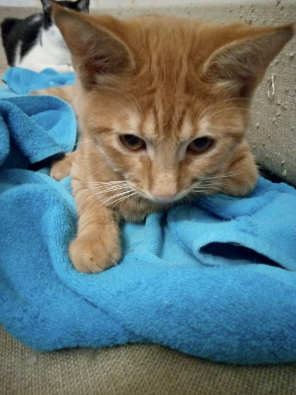Кошеня врятоване, за характером дуже ласкаве кошеня, вік 6міс, обожнює цілуватися😻, спати обнімаючись , веселий, грайливий та дружній до інших 🐾 Є щеплення, на лоток відмінно.