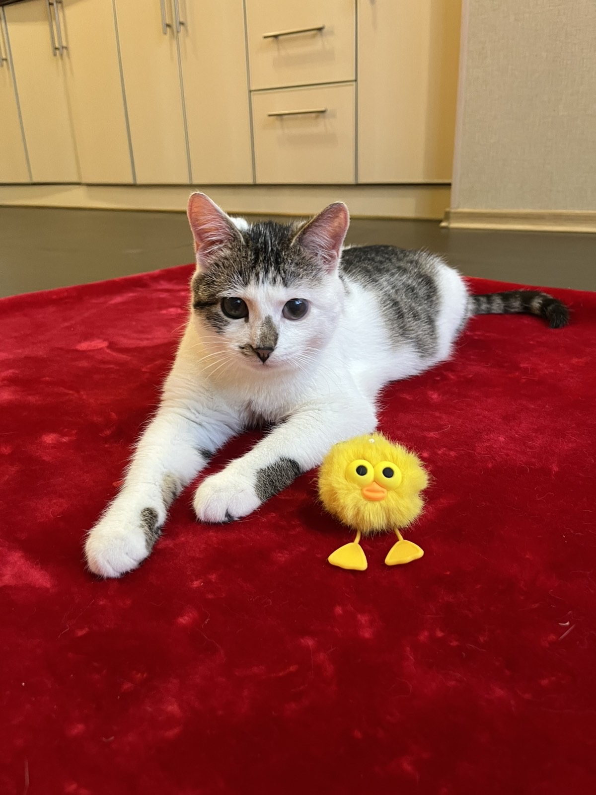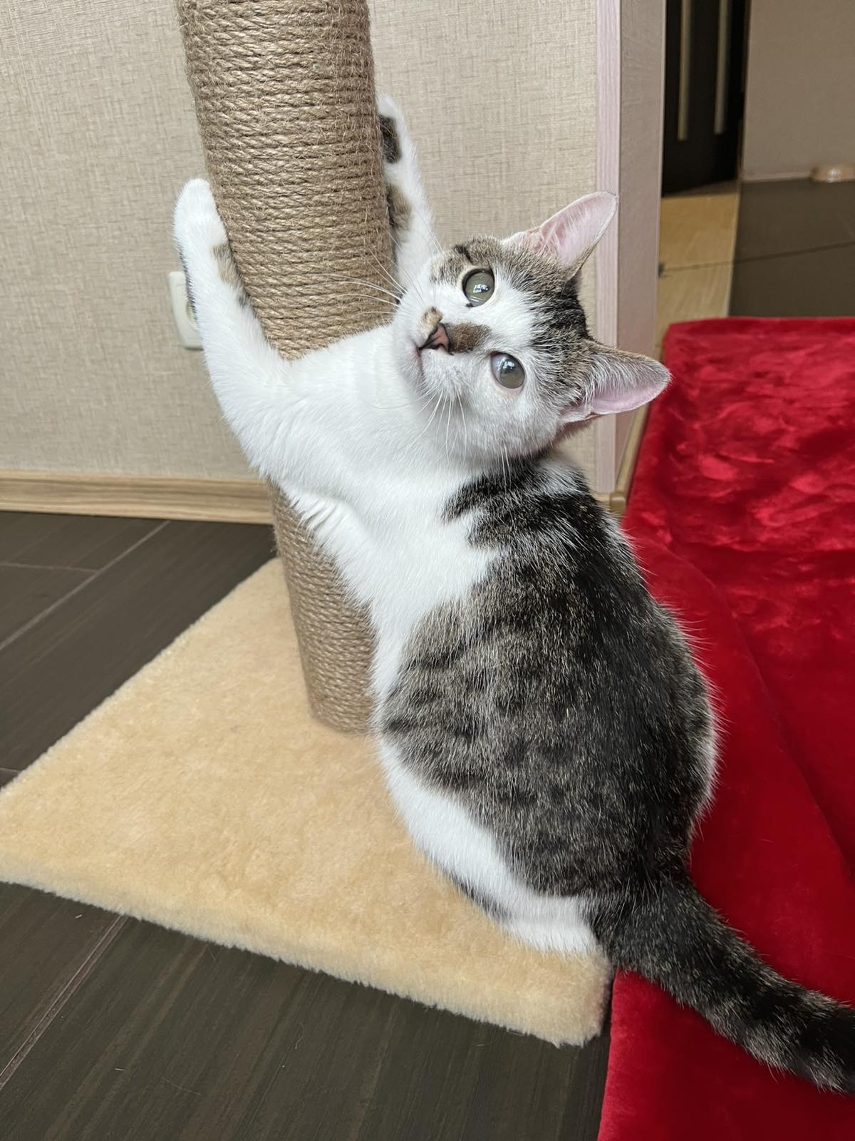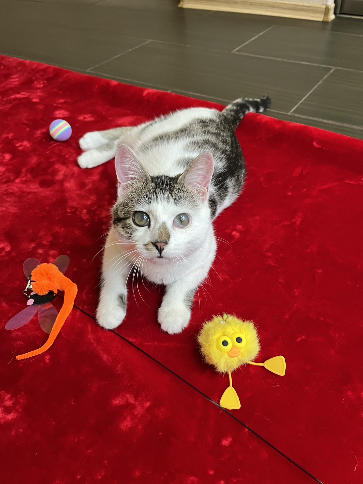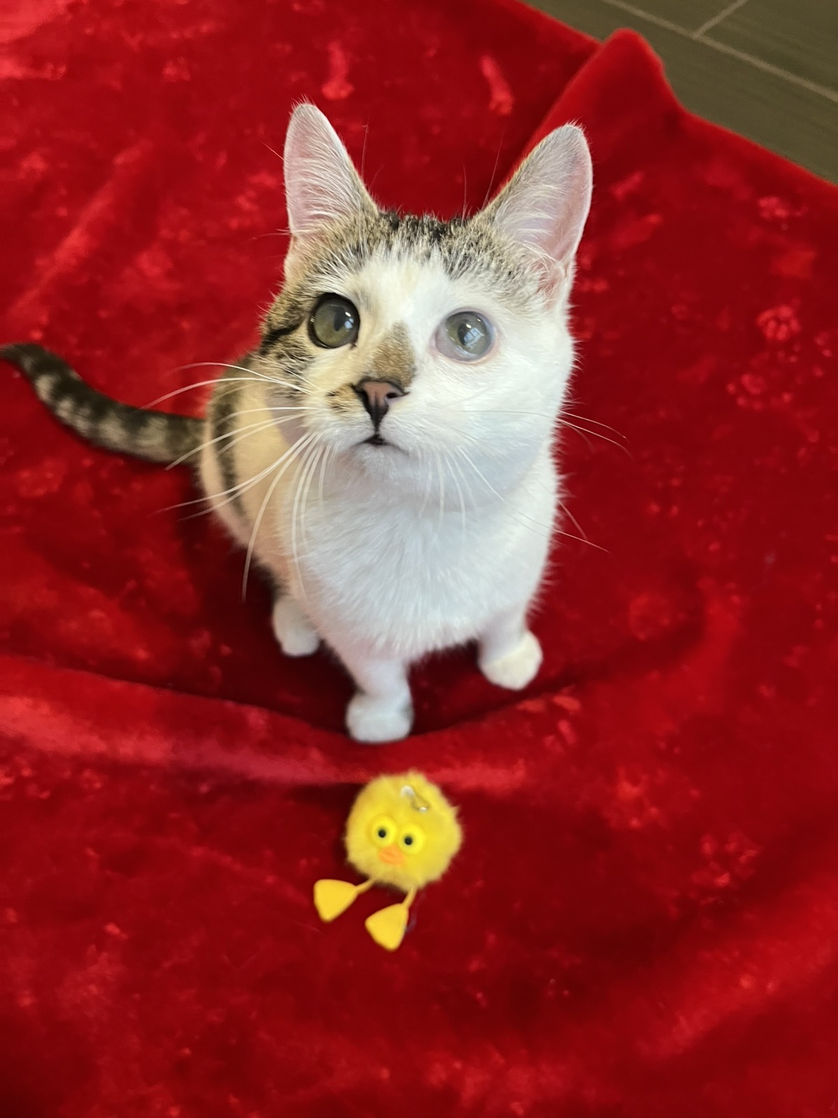 Красунчику близько 6 місяців. Зараз він цілком здоровий, хоча пережитий ринотрахеїт залишив слід на рогівці — його оченятко залишиться каламутним, але це не вплине на зір у майбутньому! 💙